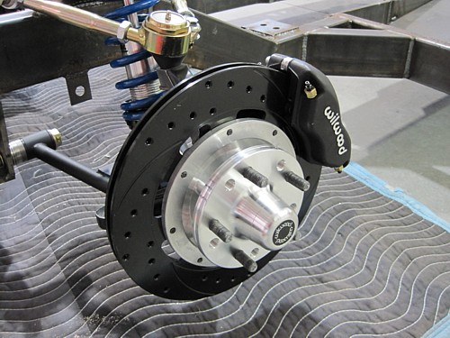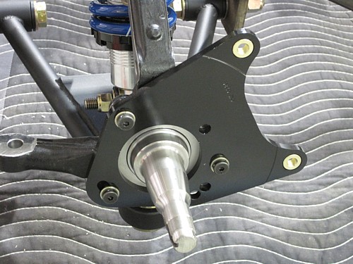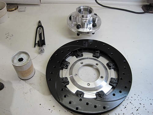 Once on, the caliper is mounted and centered using spacers per the plans.