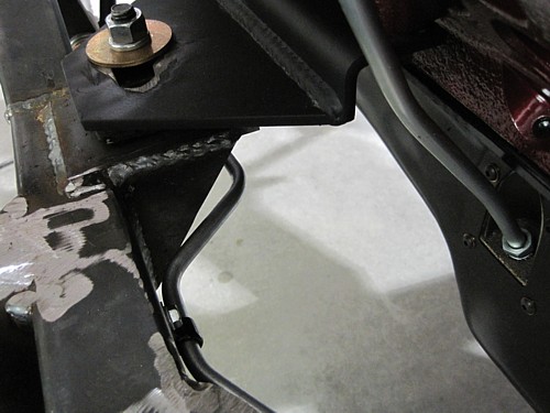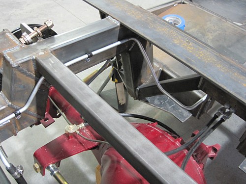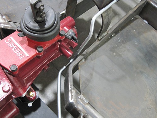 guide to bend the lines from the tank forward to the emergency brake handle.