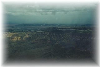 departed for our next, and likely our last, stop of the day. Soon after departing Liberal KS and passing over Dalhart TX, strange gray shapes began to appear on our windscreens. The southeastern edge of the Rocky Mountains began to take shape on the horizon. For flatlanders that have never seen mountains up close in a small airplane, these sentinels can be just a tad intimidating. We proceeded at 10,500’ MSL and 120 KTS ground speed and warily tracked these strange gray shapes as they grew bigger and more onerous. By now, we were not having any luck finding smooth air. The terrain was more rugged and that conspired with the surface winds to create strong updrafts and downdrafts. As we rounded a tall mesa south of Dalhart and turned toward Las Vegas, NM, the clouds started to force us lower. We managed to stay 3000’ AGL as droplets of water appeared on the windscreen. We did some dodging of local rain showers and we flew for a while in some light rain. That was enough to prove to me that my RV-6 was not waterproof. My son turned around to find water being pushed into the baggage area from underneath the sliding canopy skirt. Clothes, cameras, and carpet were damp. Just about that time, a big, gray, and partially obscured mountain appeared in our flight path. It was a 9,000’ peak just east of Albuquerque up on the Sandia plateau near Golden, NM. That’s when I called Glen on the radio and said I’d had enough for one day. He agreed as we both simultaneously punched the “nearest” button on our GPS. Up popped the Sandia East Airpark (1N1) and off we headed.