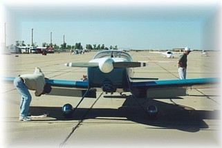 Our hosts suggested that we take a peek over the Sandia Crest to see if the valley was passable. They suggested that we head south to Alexander (E80) in Belen, NM and if the valley looked good, make a run westward. This would also give us the option of swinging south around the tall stuff and into Tucson, AZ if the ceilings didn’t allow a more direct route. St. John’s was reporting clear conditions, but very windy. While I went down to Dennis’ house to prep my airplane, Glen took Ken up for a ride in his RV-6 and to take a peak to the west. He returned 10 minutes later to report that there was space between the clouds and the crest and that the valley looked clear beyond. With that, we made the decision to give it a try. We fueled up our birds with 20.7 gallons at $ 2.34/gallon to cover the previous evening’s 2.7 hour leg from Kansas. We thanked our hosts for their warm and generous hospitality and took off. And off. And off. At 6500’ we used almost all of the mile long runway to get airborne. Once we finally tugged our fat butts into the air, we turned southwest and plunged over the Sandia Crest towards Belen. We were very happy with the relatively calm air and 4000’ ceilings. Visibility was greater than 10 miles so we could see and navigate around the patchy showers. Once over Belen, we turned west on a “relatively” direct route to St. Johns. I say relatively because they’re are more than a few peaks to be navigated around. We saw some spectacular scenery as we made our way west, flying up valleys and around brightly colored and majestic buttes. As we neared the high plain that holds St. Johns, the clouds dissipated. Unfortunately, the winds did just the opposite. Our ground speed slowed to a pedestrian-like 115 KTS. The winds were now 40 KTS and no amount of altitude was going to save us from their punishment. We tried 12,500’ MSL but no joy. Since we didn’t carry bottled oxygen, we were out of options. We passed St. Johns and I had thoughts of landing, but decided to press on. After about another 10 minutes on the roller coaster, I was regretting my inaction. Just then, an airport appeared in my windscreen amid the high pine forests of eastern Arizona. It was Show Low (SOW). Glen and I agreed that a stop was in order as both of his passengers were suffering. We called on the UNICOM and were promptly informed that runway 21 was closed and we’d have to use 27. Winds were 19 to 21 at 45 KTS. A quick computation in my mind determined that we’d have a crosswind component of approximately 30 KTS!!. My downwind crab was so severe that I had to look behind me to see the field. Glen made his approach first. As Glen was on final, the UNICOM folks, apparently concerned with our safety, warned us about severe terrain-induced updrafts off the approach end of the runway. I was concentrating on my approach when I heard Glen say “Randy, that crosswind is brutal”. I used about a 45 degree crab and tried to stay aligned with the runway. Near the ground, I pushed in full rudder deflection, planted the mains on the asphalt, and hit the breaks hard. Fortunately, my forward speed at touchdown was only in the neighborhood of 30 MPH to 40 MPH. I actually made a decent touchdown. Now the problem was rollout and taxi. My main tires were actually skidding sideways across the runway as I taxied. I slowed to a crawl and taxied in to join Glen on the ramp. After shutdown, the wind was buffeting my wings to the point where the airplane was hopping and skipping backwards off the ramp. An alert ground crew member pulled up in a pick-up truck to block the wind so our birds wouldn’t become airborne unless we intended them. The folks at Show Low couldn’t have been any nicer. I think they were surprised that we were able to get down without crashing. (I was somewhat surprised myself!) After letting our stomachs rest for an hour, we made plans for our final push into Phoenix. The first order of business was getting out of Show Low in one piece. I knew that I didn’t have enough rudder authority to hold my airplane on a takeoff roll on 27. The airport supervisor, a fellow pilot, was very sympathetic. No need to describe the ground handling difference between a tail dragger and a nose dragger to him. He suggested to us that we use the closed runway, 21, to depart. The runway had just been resurfaced and it was closed only because the painter hadn’t made it out yet. He made a call to the airport manager and over he motored in his truck. After verdant pleas on our part, he agreed to “go to lunch”, and if someone just happened to use a closed runway, well……… We thanked everyone and taxied out. The supervisor removed the temporary barricades blocking the runway and bid us good luck. We hopped off the deck in about 400 feet and climbed into the western sun. This time, we were able to find somewhat stable air at 12,500’ MSL. I thanked God for the good fortune and dialed in Roosevelt Dam as my next checkpoint. In less than an hour, we were letting down into Phoenix airspace just south of the Four Peaks area. I bid Glen goodbye as he headed to the west side of Phoenix to meet up with relatives. I made the transition over the Superstition Mall and called the tower at Gateway. We entered the pattern and made a smooth landing on 30C. We followed the man on the scooter and before long, we were shutting down on the show plane line. We had made it!!! We tended to the airplane, registered, and secured things for the night. We fueled up to avoid tomorrow’s rush. We took on 20.7 gallons at $2.37/gallon. Our last leg had lasted 3.4 hours, the longest of the trip. In two days, we had flown 1290 nautical miles in 11.9 flight hours, and burned a total of 91.5 gallons for an average burn of 7.7 gallons/hour.