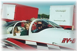 Since this “little” trip would involve significant distances and flight hours, many of the wives…..okay, MY wife anyway………..was concerned and just a tad bit apprehensive……okay, okay, she was REAL apprehensive. A cookout with the flyers and our wives was in order to make acquaintances and allow everyone the chance to participate in the planning. However, even before we could hold the cookout, problems developed. While flying the final few hours off of his new bird, the engine on Clay Smith’s RV-4 spit out a valve seat in cylinder #1. Fortunately, this happened to Clay while he was on the ground during a fuel stop. Unfortunately, his bird was going to be down for more than a month for a cylinder rebuild and a thorough internal checkout. Then, just days later, Bob Japundza decided to remove that pesky taxi light in front of his hangar with his new Hartzell prop. Although he only clipped the glass bulb with one blade, it was enough to require a prop shop to fix. Frantic searches failed to find a shop that could turn the prop around in time for the trip, so Bob was bummed, as were Glen and me. We hoped that this was not a portend of things to come. To help plan our trips, we made extensive use of three Web sites. First, www.airnav.com helped to layout the great circle route and helped to check fuel prices. Second, I used www.echarts.cc to order all my sectionals, WACs, and terminal charts. Third, I used www.aeroplanner.com to fill in the details and to print easy to use trip tickets. Our planned westward route would be Indianapolis, IN to Marshall, MO to Liberal, KS to Albuquerque, NM to Mesa, AZ for a total of 1290 nautical miles. Weather would determine the actual course taken, our fuel stops, and where we would spend the night. Our departure was set for Wednesday, October 11. My wife wasn’t any less apprehensive after the planning session. (Fear of heights will do that to you.) However, she knows me well enough to know that I’d be as safe and careful as possible. In short, she gave me permission to go. Whew! The weather reports looked very good over most of our course. Clear skies with strong winds dominated the Midwest and Plains. It was raining in New Mexico but it was anticipated to be scattered by the evening. Arizona was clear. We were a go for launch! My son Alex and I loaded about 50 lbs of baggage into the back of our RV-6 and we pushed her out of the hanger just as the sun was cresting the nearby corn fields. Our anticipation was palpable as we fired up our bird and departed Franklin Flying Field (3FK) for Eagle Creek (EYE) to pick up Glen, his wife Jacque and their daughter Jenny. Glen’s “3-place” RV-6 is really a standard RV-6 with a child seat bolted to the luggage floor in the back. Glen is an AP and AI for United Airlines so he has access to material and services the rest of us only dream about. With his daughter on board, that meant that Glen had to ship some of his baggage ahead of him to relatives in Phoenix.