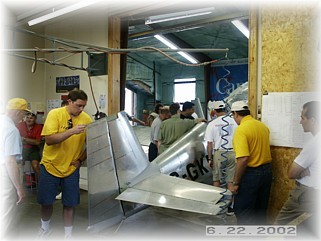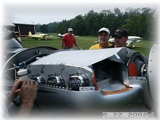 It's amazing how quickly an open cowling will attract attention. Mark removed the top off of his Rocket to show us the new plenum chamber he's been using. |