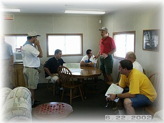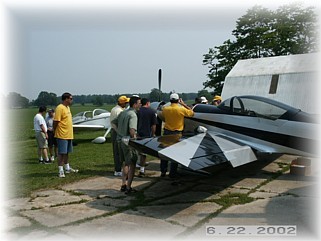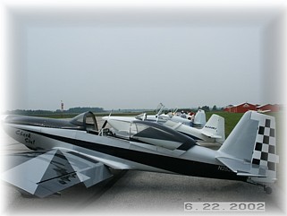 As was the case last year, Mark Frederick flew up from the heart of F1 Rocket country (Taylor, Texas) to meet up with the flyers from Indianapolis. The group met at the new Hendricks County airport (K2R2), which is being built on Indianapolis' west side to replace the old Speedway airport, which closed in December. Our flight director was Tom Utterback, and you can see from the picture that everyone is intently paying attention to his briefing. After a call to Canadian