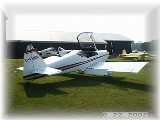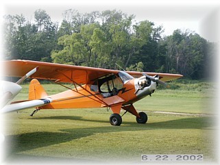 Terry Jantzi bummed this Cub off of a friend and flew down from his home about 60 miles away. He said that it took him over an hour to get there. That'll teach you to sell your RV! (Hey wait a minute, look who's talking!) Peter Noble spent most of the day up in the air in his red Hatz Biplane giving folks a ride in the open cockpit. He contributed greatly to the "air fair" atmosphere.