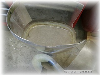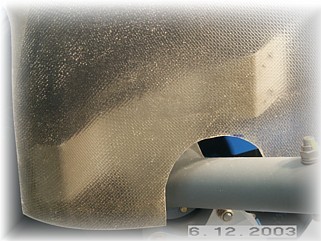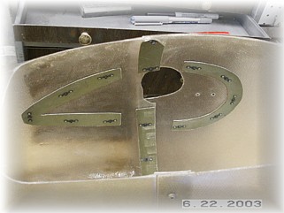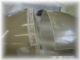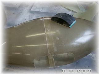 I also glassed a three ply layer of cloth over the main attach holes. This will provide some additional mounting strength. Once the cloth dries, I'll drill out the holes. I also glassed in the rear inside panel to the pants. Next are the gear leg stiffeners and gear leg fairings. That work starts on the next page. |