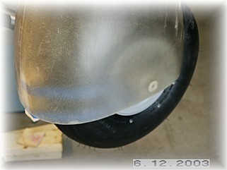 When trimming the tire opening in the wheel pants, remember a couple of points. One, don’t trim anything off the inside edge because the wheel pant is offset to the inside by almost ¾” and you’ll have too much room on the inside the way it is. Second, don’t worry about doing the final cuts until you have the wheel pants bolted in their final position. Just cut enough of the pant away to get the desired fit and leave the final cuts until later.