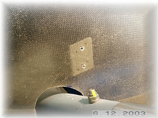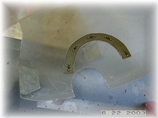 With the pant mounted, I took my Dremel tool and cut the tire opening to the final size. Since the pant is offset over the tire, the opening will not be symmetrical. That's no big deal because it is on the bottom and the only people who will see this are the surprised RV pilots as they look up to see you zoom past them by about 20 kts, and they'll be busy cleaning out their trousers. After fitting the lower gear fairing, I mounted the plate nuts to the fairings using aluminum strips as backing. The wheel pants see a lot of wear and tear so I don't want the holes wallowing out.