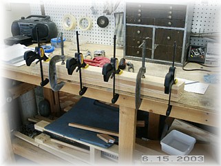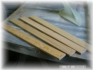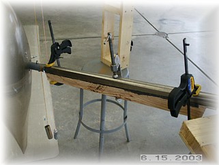 Contrary to the plans, I intend to go ahead and add the gear leg stiffeners now, rather than wait to see if I have any gear leg shuffle. I'd rather so all this work now while I have the airplane in my shop rather than later at the airport. I went to Home Depot and picked up four pieces of fir. Since I couldn't find the wood in the appropriate thickness, I decided to just glue two pieces together to make up a single stiffener.