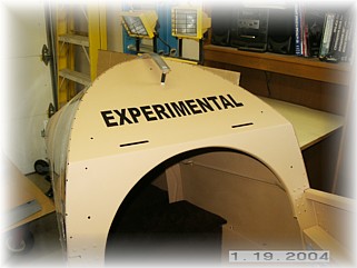I'm at the point where I'm ready to install the windshield, but before I do, I must finish the interior. My first step is to install carpeting in the baggage area. I also reverse painted my experimental placard on the rear deck.