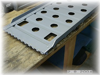 Here you can see the two ribs that I made and riveted to the floor. With the seat pan installed, I went ahead and began mounting the restraint system. That work continues on the next page. |